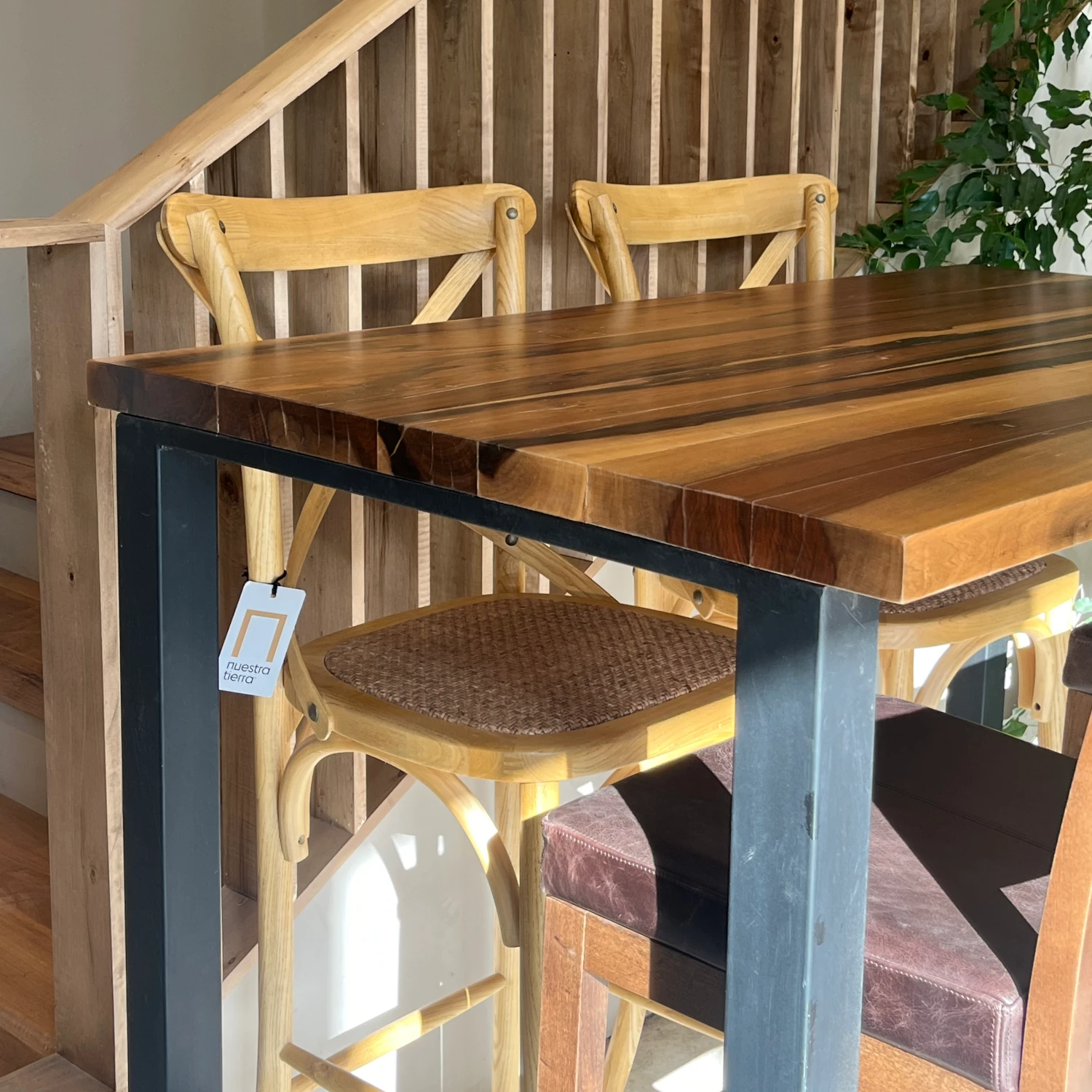 Barra De Madera Maciza Guayubira Con Pie De Hierro Y Ruedas