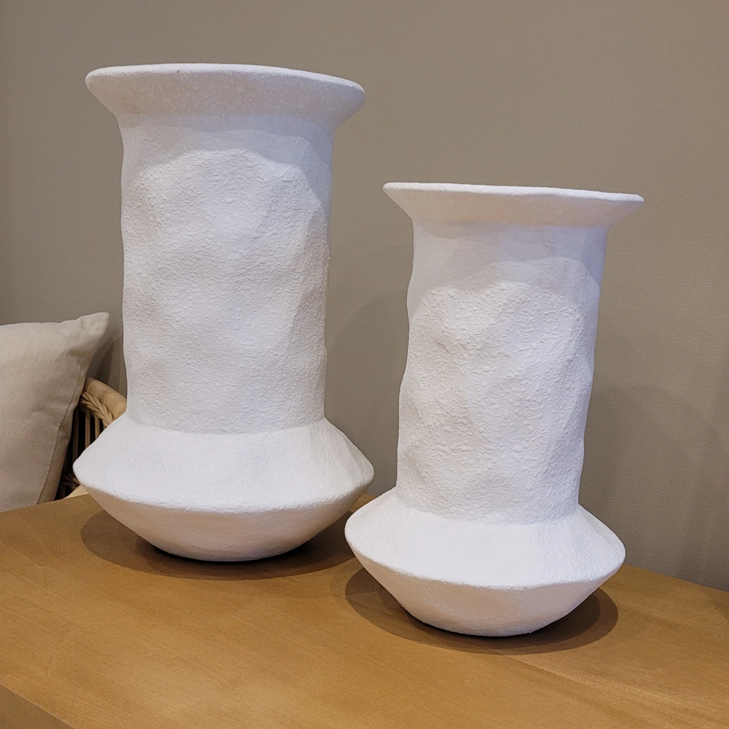 Set Jarrones Cerámicos Blancos Texturados