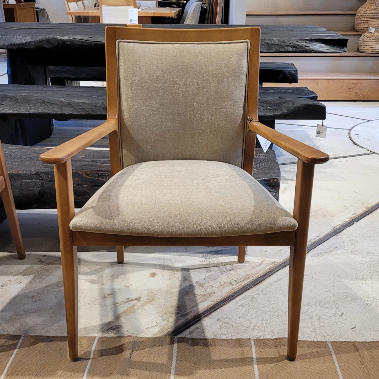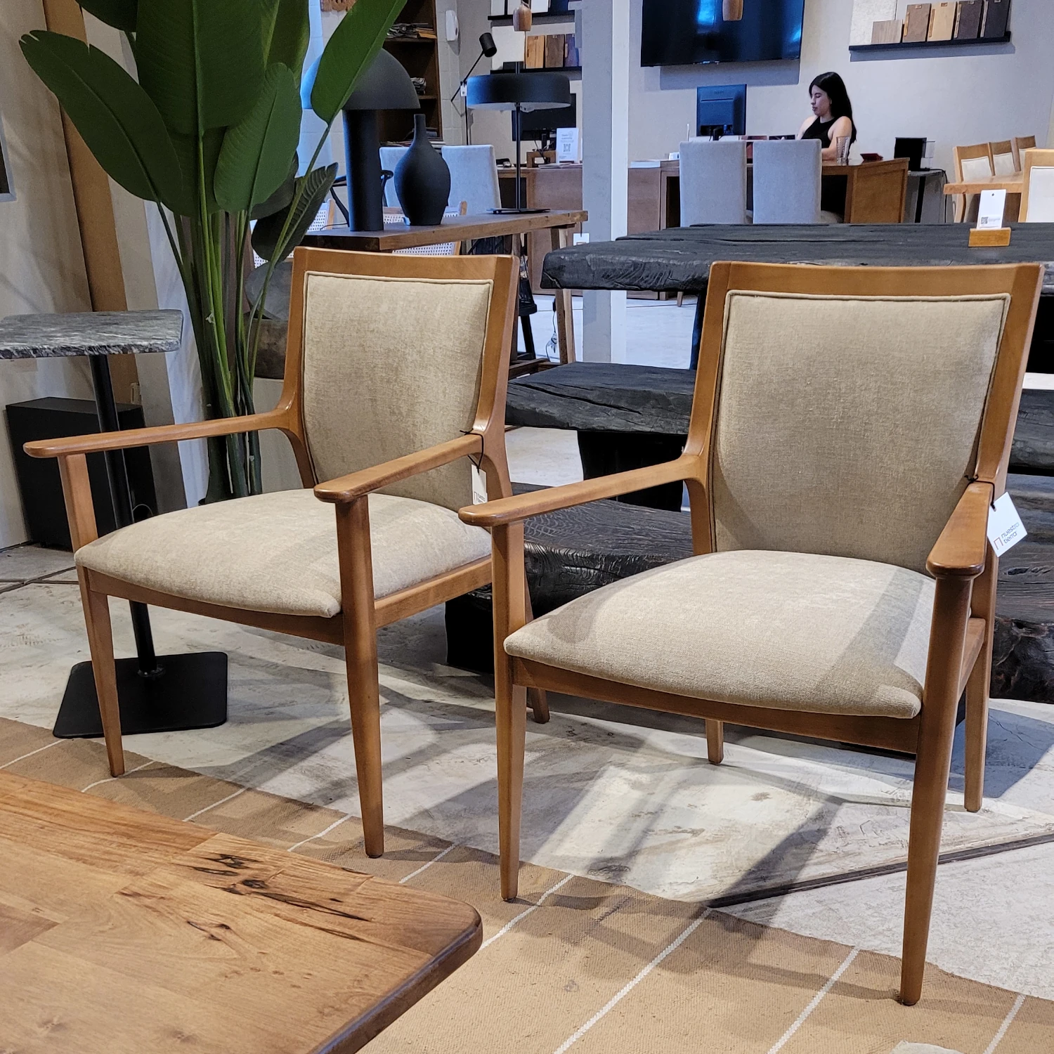 Sitial De Madera Maciza De Guatambú Tapizado En Género Antimanchas Leyend Beige