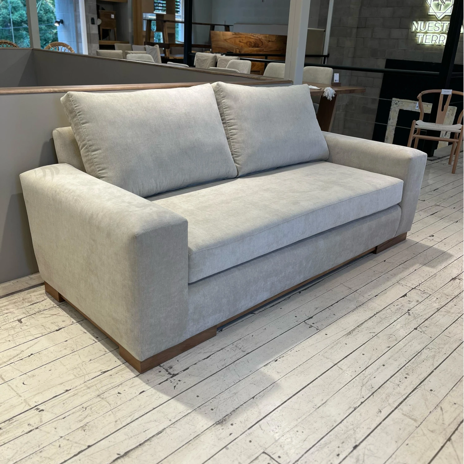 Sofá De 2,5 Cuerpos Tapizado En Género Antimanchas Con Zócalo De Madera Maciza